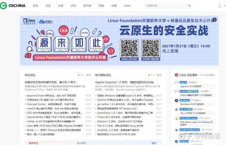 開源中國也是中國唯一一個(gè)專業(yè)報(bào)道開源事件的社區(qū)。網(wǎng)站會實(shí)時(shí)上報(bào)開源世界的所有信息,還有中文版:gitee。
