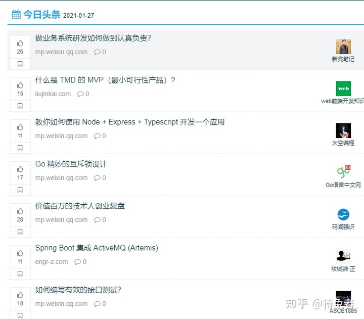 開發(fā)者今日頭條也是近兩年才開始活躍的技術(shù)分享平臺。它是由一群程序員創(chuàng)建的。我對它的第一印象是Code ,它是專門為程序員設(shè)計(jì)的IT技術(shù)。每周。平臺每周都會挑選一周的IT科技干貨推送。不久前,當(dāng)我發(fā)現(xiàn)我的一些獨(dú)立博客的流量來自這個(gè)網(wǎng)站時(shí),我發(fā)現(xiàn)了它。目前,開發(fā)者今日頭條已經(jīng)聚集了一批科技愛好者。