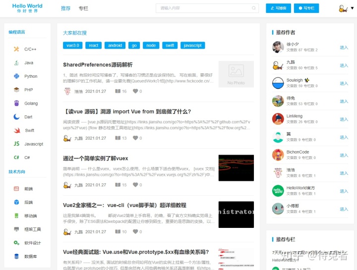 掘金成立于2015年8月,最初來自稀土,是稀土的一個(gè)子板塊。沒想到稀土并沒有走紅,掘金卻作為一個(gè)技術(shù)分享網(wǎng)站走紅,所以創(chuàng)始人明明立即調(diào)整方向,大力發(fā)展掘金。去年,掘金也開設(shè)了自己的專欄和小冊子,慢慢從一個(gè)技術(shù)文章分享網(wǎng)站轉(zhuǎn)型為綜合性技術(shù)社區(qū),期待后續(xù)發(fā)展。